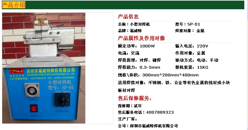 SP系列對焊機是一種專業焊接黑色金屬和有色金屬的專業焊機,它用電阻對焊法,電能利用率高,焊接效果好。是全國拔絲制釘、電線電纜、漆包線、鋼絲繩廠及不銹鋼制品,還有外貿產品等工業部門的得力助手。(外貿產品可根據客戶要求定做)